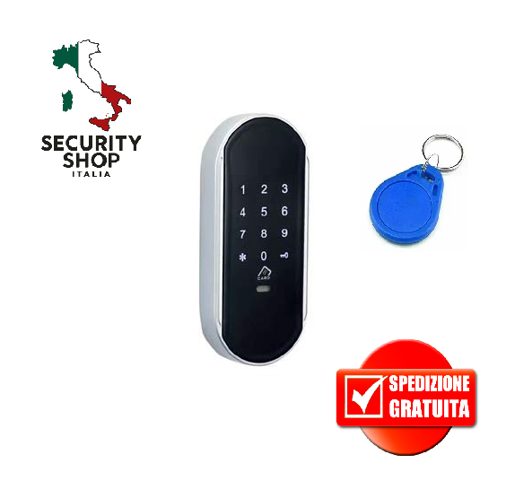 Contenuto della confezione: Tastiera, Serratura e n°. 1 chiave elettronica RF, istruzioni per montaggio e programmazione.