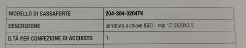 Cartella serratura ricambio Art. 100204 per Cassaforte Stark mod. 204-304-3204TK